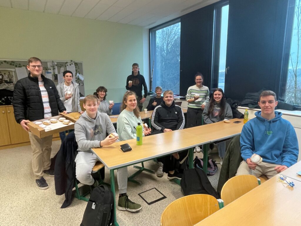 Fabian Wilflingseder (Absolvent) kam heute im Namen der Fill GmbH zu Besuch um die Schülerinnen und Schüler der 3BHIF mit morgendlichen Faschingskrapfen zu überraschen. Die Fill GmbH ist Klassenpate der 3B. Die Freude über den Besuch war groß und hat der Klasse den Tag versüßt.
