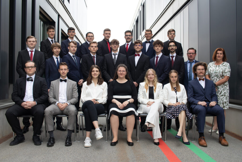 - Reihe von links: Stefan Geßl, Alexander Lindner, Simon Mair, David Weiß, Maximilian Hartl, Raffael Nistelberger, Ben Obermüller, Gabriel Schmidbauer, Mag. Gerald Hainbucher, Dir. DI Barbara Egger